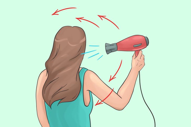 Αυτό το λάθος φαίνεται να είναι προφανές, αλλά μερικοί άνθρωποι στεγνώνουν τα μαλλιά τους διατηρώντας το πιστολάκι στην ίδια θέση. Η συσκευή θα πρέπει να κινείται συνεχώς, να αλλάζει γωνίες και να περιστρέφεται γύρω από το κεφάλι. Θα σας βοηθήσει να καθαρίσετε και να στεγνώσετε τα μαλλιά ή ένα όμορφο στυλ πολύ πιο γρήγορα.