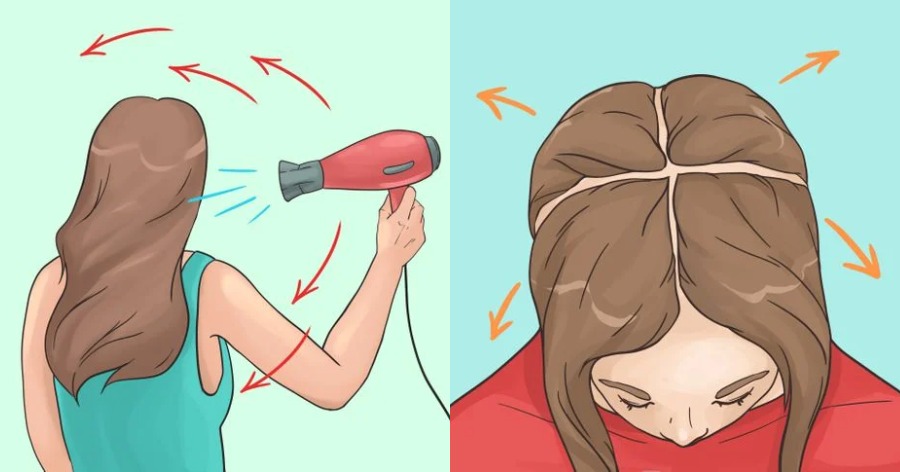 Συχνά, στεγνώνουμε όλο το μαλλί μετακινώντας το πιστολάκι μπρος-πίσω. Η διαδικασία θα γίνει ταχύτερη και πιο αποτελεσματική εάν διαχωρίσετε τα μαλλιά σε 4-5 ζώνες και διορθώσετε κάθε ένα από αυτά με κλιπ duckbill. Δοκιμάστε να κάνετε 2 χωρίσματα – ένα κατακόρυφο (από το μέτωπο έως το λαιμό) και ένα οριζόντιο (από το ένα αυτί στο άλλο).