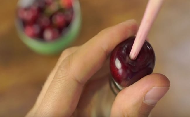 6) Βάλτε ένα κεράσι πάνω από ένα άδειο μπουκάλι μπύρας και με ένα ξυλάκι βγάλτε το κουκούτσι.