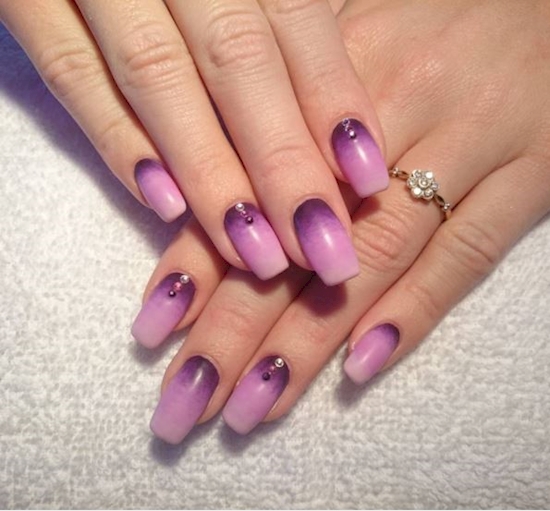– Purple Haze: Το μοβ είναι μια δημοφιλής επιλογή για το ombré. Αυτό το μανικιούρ περιλαμβάνει μοβ, λιλά και ροζ. Αν αγαπάτε τα μοβ νύχια είναι ιδανικό για εσάς.