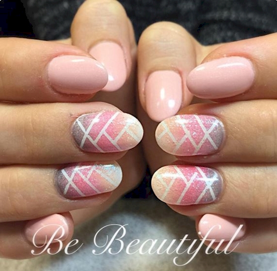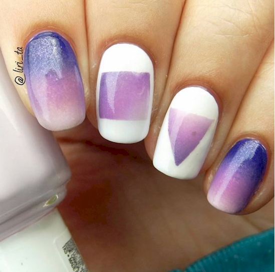 – Γεωμετρικό Ombre: Αυτό είναι μια δημιουργική ιδέα! Περάστε στα νύχια σας ένα στερεό χρώμα βάσης, χρησιμοποιήστε λεπτή ταινία και φτιάξτε τα σχήματα σας.