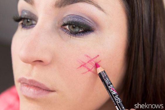 Εφαρμόστε το αγαπημένο μολύβι χειλιών ή κραγιόν ως ρουζ. Εφαρμόστε στα ζυγωματικά σας και μουντζουρώστε το.