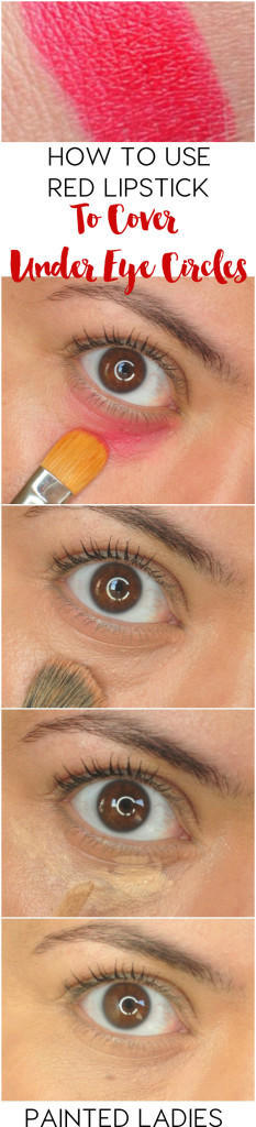 Χρησιμοποιήστε κόκκινο κραγιόν ως βάση και από πάνω μέικαπ για να καλύψετε τους μαύρους κύκλους κάτω από τα μάτια.