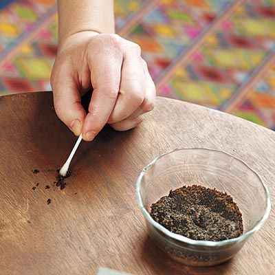 Μπορείτε επίσης να χρησιμοποιήσετε τον καφέ με υψηλή ζύμωση κατά τον ίδιο τρόπο σε σκούρο ξύλο. Εναλλακτικά, τρίψτε τα κομμάτια του καφέ επάνω στο ξύλο με μια μπατονέτα.