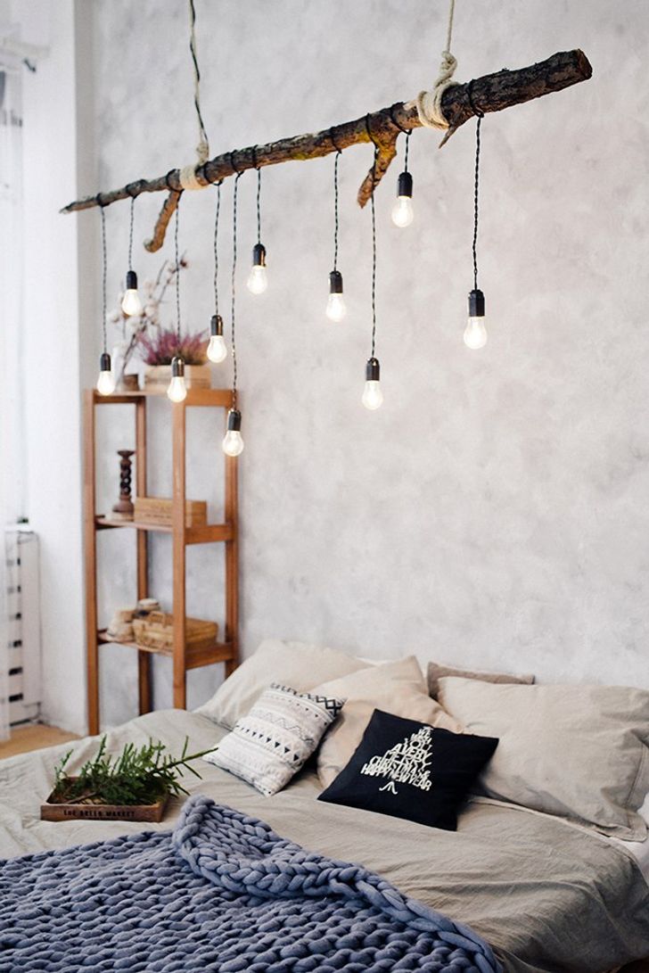 15. Μια όμορφη λάμπα ή γιρλάντα μπορεί να κατασκευαστεί από ένα απλό κλαδί και λαμπτήρες.