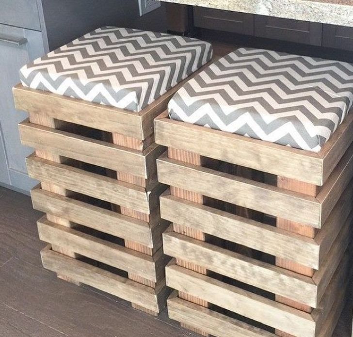 13. Για να φτιάξετε τέτοια καθίσματα και ένα τραπέζι, μπορείτε να χρησιμοποιήσετε ξύλινα ταχυδρομικά κουτιά.