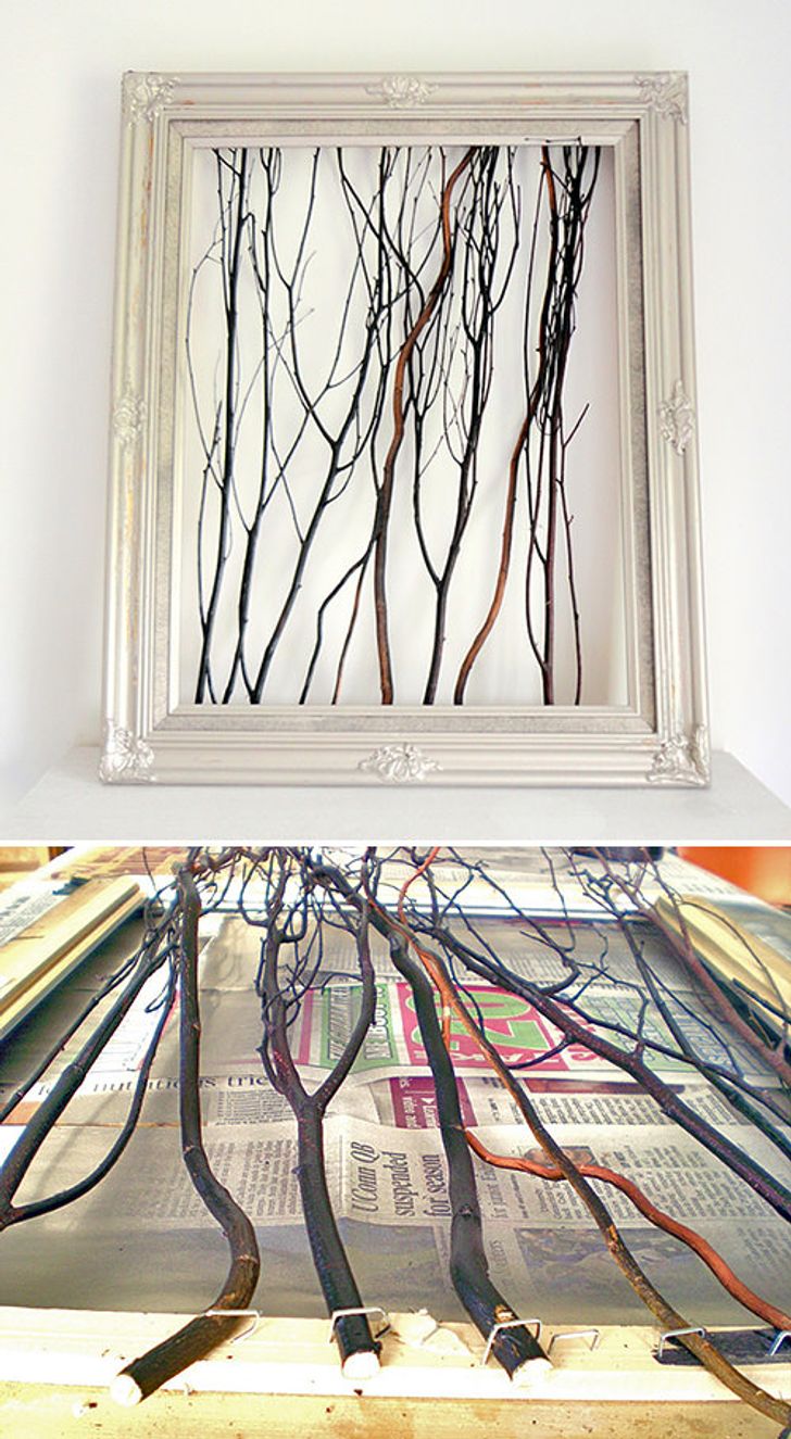 2. Ένα παλιό κάδρο + κλαδιά = ένα αριστούργημα