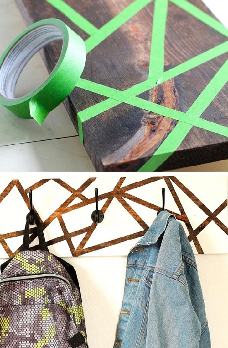 14. Δημιουργήστε μια ωραία κρεμάστρα χρησιμοποιώντας μια ταινία και μια ξύλινη σανίδα.
