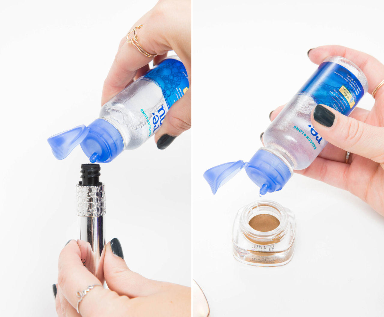 – Ανανεώστε μία ελαφρώς αποξηραμένη μάσκαρα, αϊλάινερ ή σκιά με φυσιολογικό ορό. Ρίξτε μερικές σταγόνες για να αναζωογονηθούν.