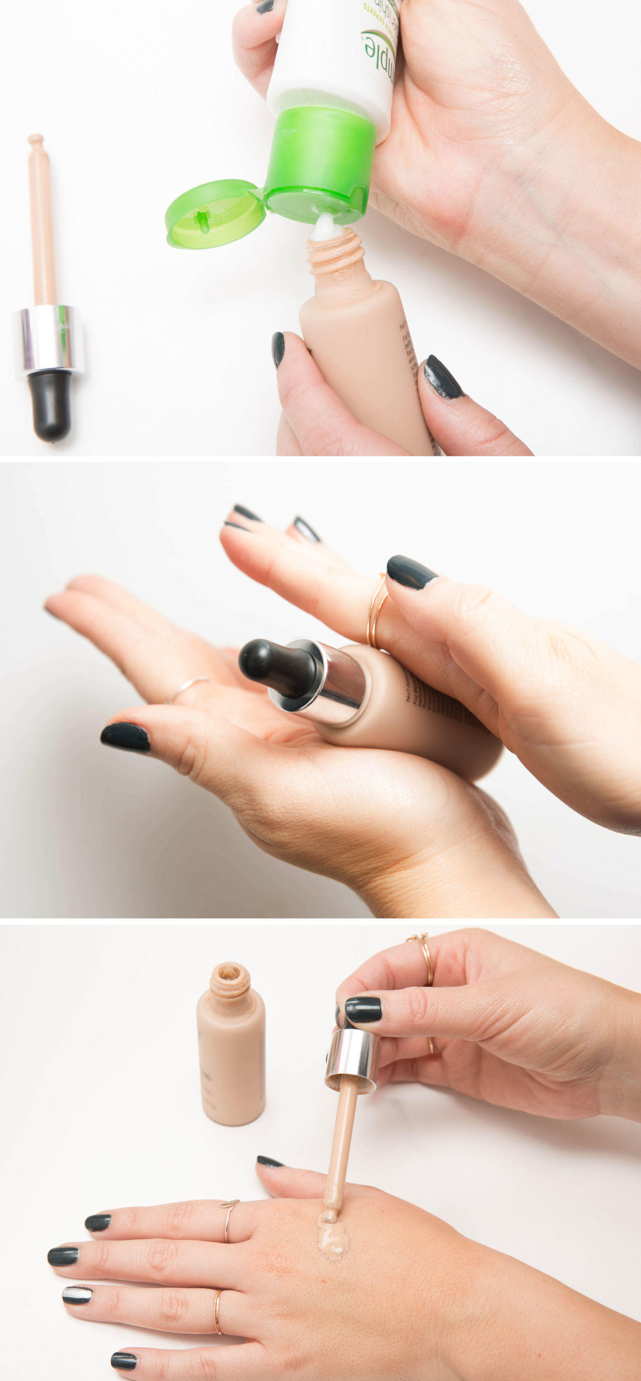 – Επεκτείνετε τη διάρκεια ζωής της βάσης για το μακιγιάζ. Προσθέστε κρέμα προσώπου και μετατρέψτε τη σε ενυδατική με χρώμα.