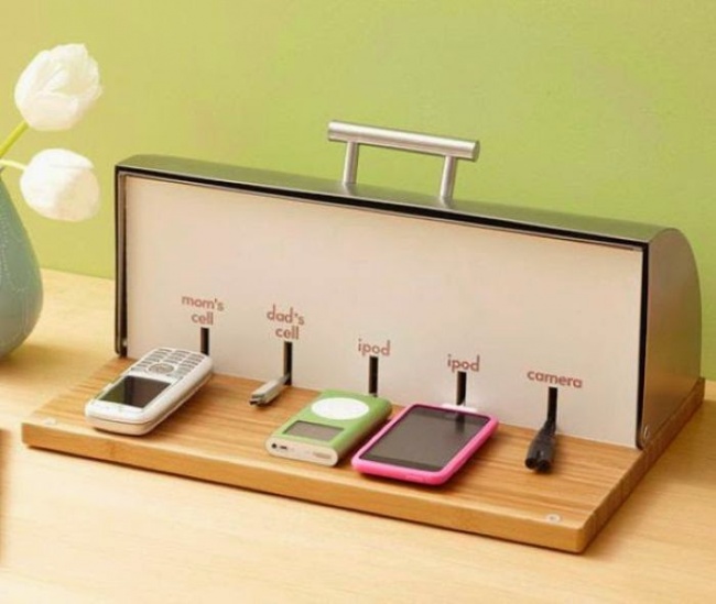 Μια καλή ιδέα είναι να φτιάξετε μια κομψή συσκευή από μια ψωμιέρα που δεν χρησιμοποιείτε, λύνοντας έτσι το ζήτημα των μπερδεμένων καλωδίων.