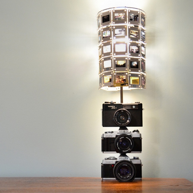 8. Φωτιστικό από παλιές κάμερες και φιλμ