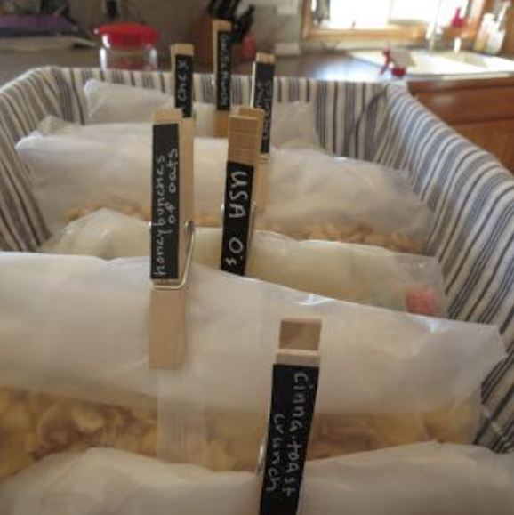 4) Μπορείτε να γράψετε πάνω στα μανταλάκια το όνομα του προϊόντος που έχετε βάλει σε σακουλάκια ώστε να μην μπερδεύεστε ποτέ.