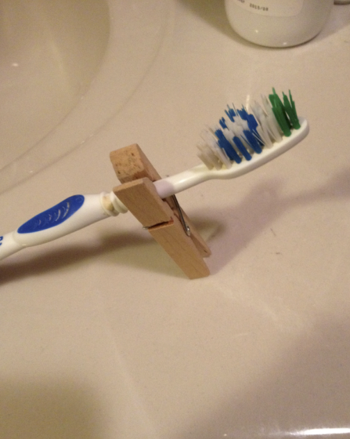 12) Φτιάξτε μια βάση για την οδοντόβρουτσα σας. Δε θα τη μπερδέψετε με καμία άλλη και συγχρόνως δεν θα ακουμπάει σε βρώμικες επιφάνειες. Μπορείτε επίσης με μαρκαδόρο να γράψετε πάνω το όνομά σας ώστε το κάθε μέλος της οικογένειάς σας να έχει τη δική του βάση.