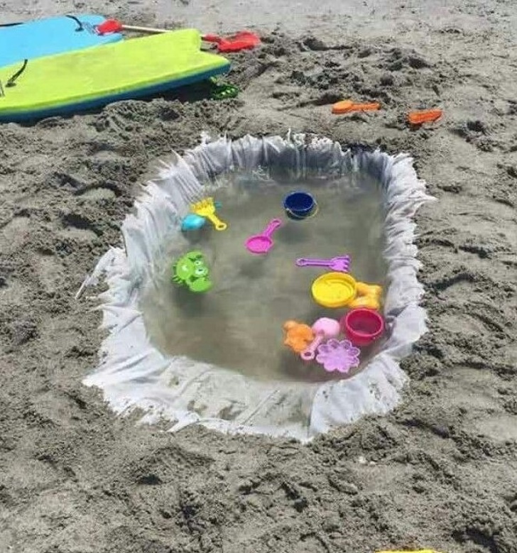 11. Χρησιμοποιώντας μια κουρτίνα μπάνιου μπορείτε να φτιάξετε μια πισίνα δίπλα στη θάλασσα.