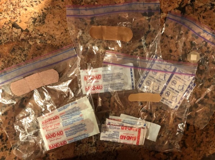 9. Ο μπαμπάς μου βάζει ένα παράδειγμα επιδέσμου έξω από το σακουλάκι για να το βρίσκουμε εύκολα.