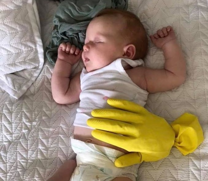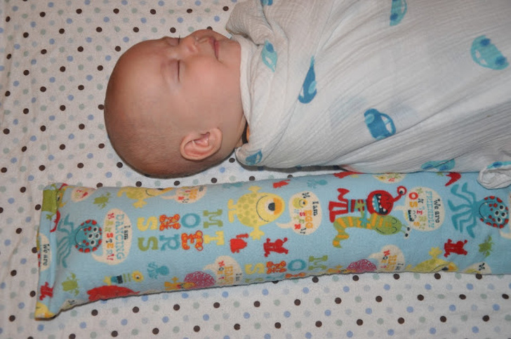4. Για να κοιμάται το μωρό ήρεμα, φτιάξτε ένα μακρύ μαξιλάρι από μαλακή κουβέρτα, βάλτε μέσα ρύζι και μπορείτε να το ζεστάνετε στο φούρνο μικροκυμάτων. Στη συνέχεια βάλτε το δίπλα στο μωρό που κοιμάται