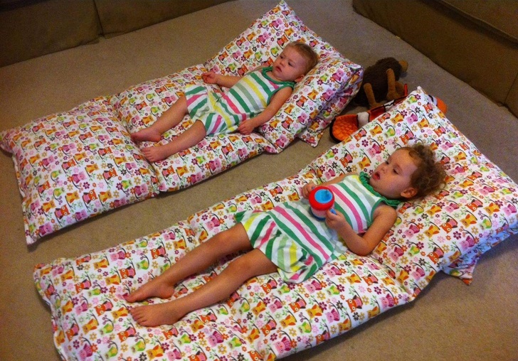 1. Ράψτε 4 μαξιλαροθήκες μαζί και βάλτε μέσα μαξιλάρια για να έχετε ένα στρωματάκι για τα παιδιά
