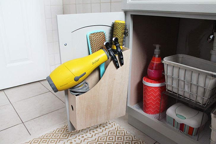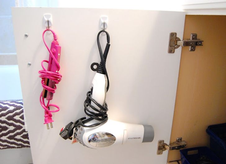 Γιατί να μην χρησιμοποιήσετε αυτούς τους απλούς γάντζους; Για παράδειγμα, χρησιμοποιήστε τα για να κρεμάσετε το πιστολάκι και την ισιωτική μαλλιών. Για περισσότερες πληροφορίες, κατευθυνθείτε εδώ.