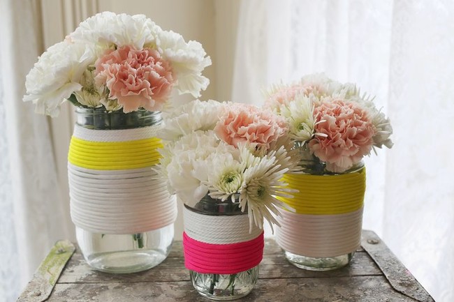 Χειροτεχνίες με σκοινί: Μπορείτε να στερεώσετε λίγο σκοινί στο πάτο των βάζων σας με κόλα.