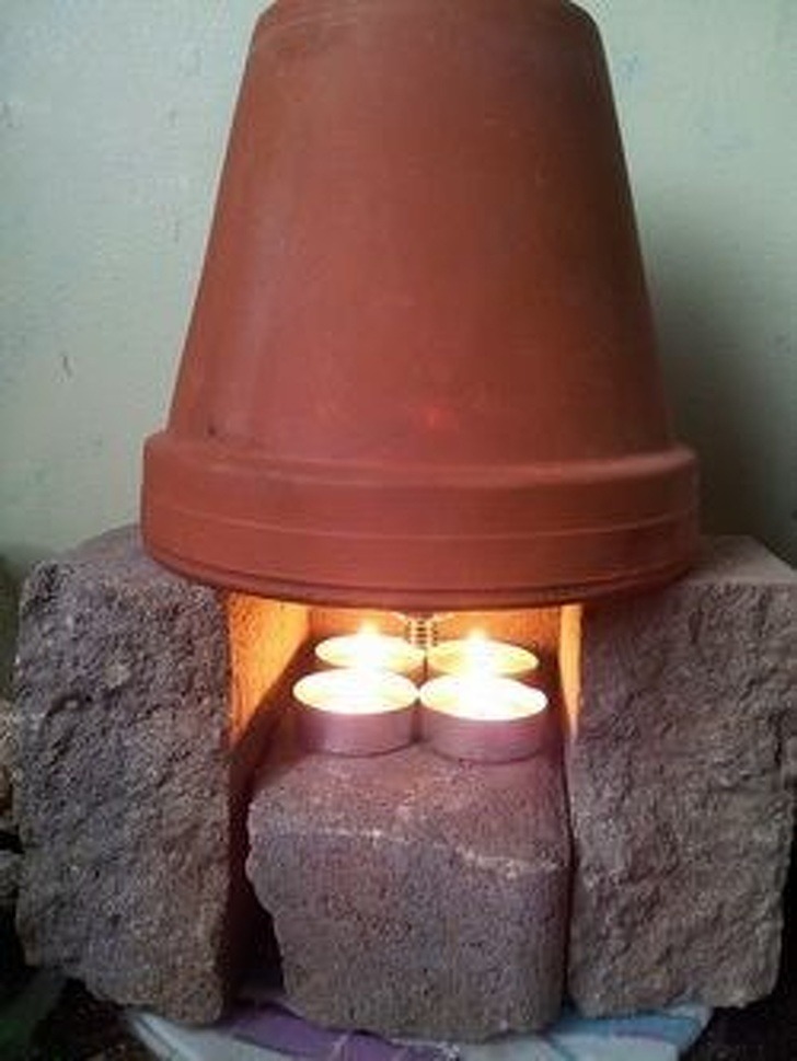 – Ζεσταθείτε, βάζοντας ανάποδα μια γλάστρα και πάνω από μερικά κεριά. Επίσης, βάλτε γύρω της τούβλα.