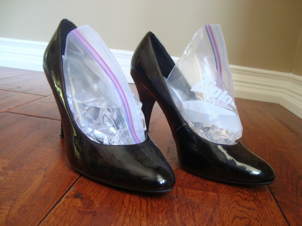 Τα παπούτσια σας είναι λίγο στενά;Γεμίστε σακούλες με νερό, βάλτε τες μέσα στα παπούτσια και τοποθετείστε τα στην κατάψυξη όλη νύχτα.