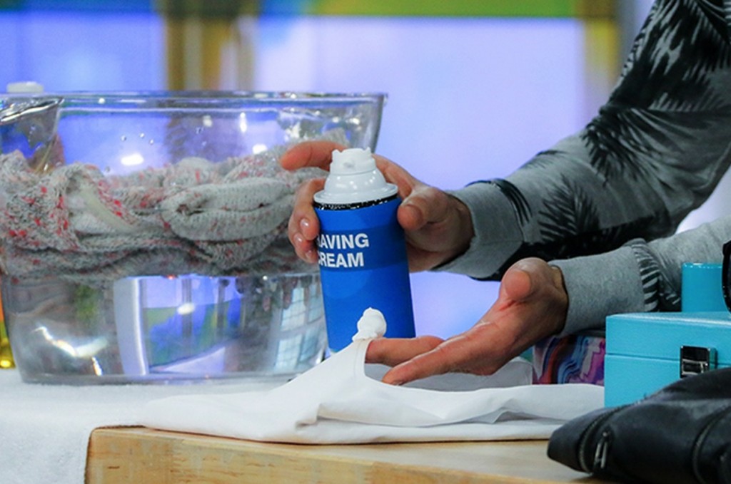 Η υγρή πούδρα δεν θα μείνει στο ρούχο σας για πάντα. Βάλτε επάνω στον λεκέ αφρό ξυρίσματος, αφήστε να μουσκέψει και μετά βάλτε το για πλύσιμο.