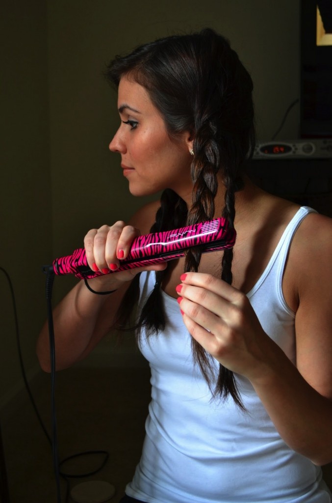 Για να έχετε αυτό την χαρούμενη εμφάνιση θάλασσας στα μαλλιά σας πιάστε τα κοτσίδες και μετά σιδερώστε τες με το σίδερο για μαλλιά.