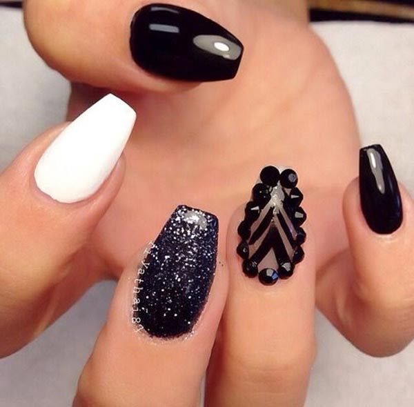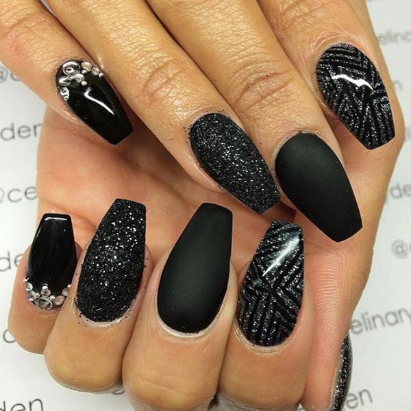 Επίσης είναι μια glamorous επιλογή για την περίοδο των γιορτών και κάνει πολύ ωραία αντίθεση με λαμπερά ρούχα που συνήθως επιλέγουμε για εκείνες τις μέρες. Το μαύρο στο μανικιούρ είναι μία απόχρωση που σίγουρα θα τραβήξει τα βλέμματα όλων, πάνω σας. Εμείς έχουμε συγκεντρώσει πολλά και διαφορετικά σχέδια για μαύρα νύχια, για να πάρετε ιδέες και να διαλέξετε αυτό που σας ταιριάζει.