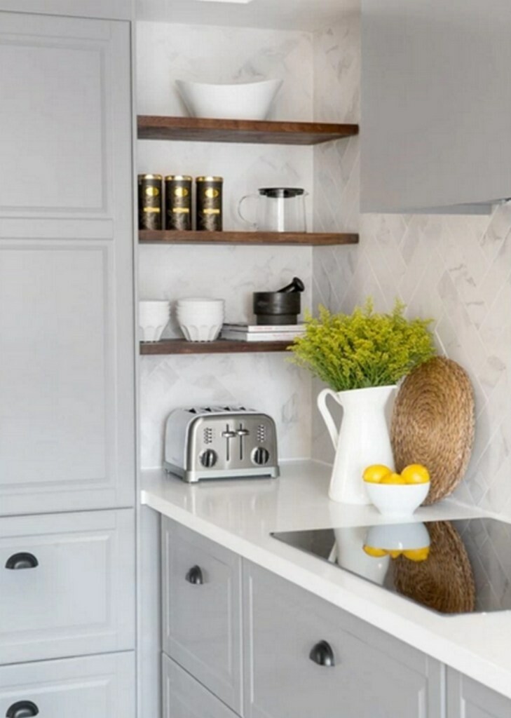 Ωστόσο, ο τύπος των ντουλαπιών, που θα επιλέξετε ως νοικοκυρές βρίσκεται σε εξάρτηση με την κουζίνα σας. Σε ορισμένα άτομα αρέσουν τα γωνιακά ντουλάπια, ενώ σε κάποιους άλλα όχι. Σε περίπτωση που δεν σας αρέσουν τα γωνιακά ντουλάπια, μπορείτε να τα έχετε ανοιχτά. Δηλαδή, να τα έχετε σαν γωνιακά ράφια.