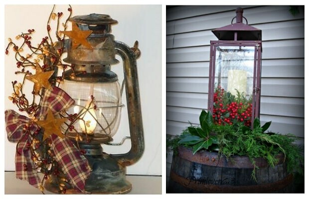Χριστουγεννιάτικη διακόσμηση με φαναράκια: Με τους ίδιους τρόπους χρησιμοποιείστε και μεταλλικές λάμπες πετρελαίου
