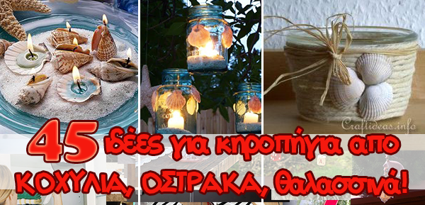 Οι κατασκευές με κοχύλια, πεταλίδες και παντός τύπου θαλασσινών, είναι πραγματικά υπέροχες και συναρπαστικές. Το εκπληκτικό είναι ότι, μπορούμε να διακοσμήσουμε άδεια βάζα, γυάλες και άλλα αντικείμενα που έχουμε στο σπίτι και δεν χρησιμοποιούμε. Ορισμένες φορές απλά βρίσκονται παρατημένα και σκονισμένα σε κάποιο ντουλάπι γιατί πολύ απλά έχουμε ξεχάσει την ύπαρξη τους ή απλά δεν είχαμε τι να τα κάνουμε.
