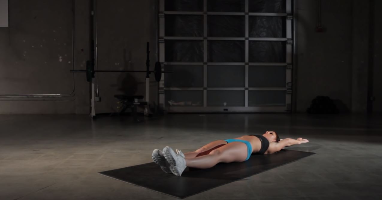 – Πρώτη άσκηση: Γέφυρα γλουτών, η οποία πραγματοποιείται σε μόλις είκοσι δευτερόλεπτα::