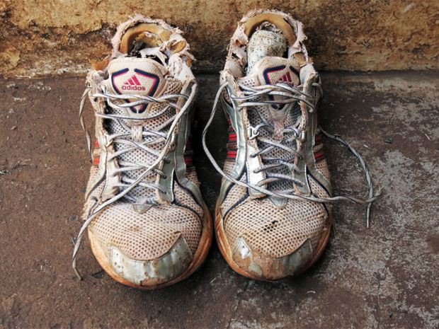 Φθαρμένα αθλητικά παπούτσια: Αντικατάσταση κάθε 480 έως 640 χιλιόμετρα. Αυτό, διότι τα φθαρμένα παπούτσια χάνουν την ικανότητα να απορροφούν τους κραδασμούς. Έτσι, η πίεση θα μεταδίδεται σε μυς, οστά και τένοντες. Σε κάθε περίπτωση, τα αθλητικά παπούτσια θα πρέπει να αλλάζονται κάθε έξι μήνες.