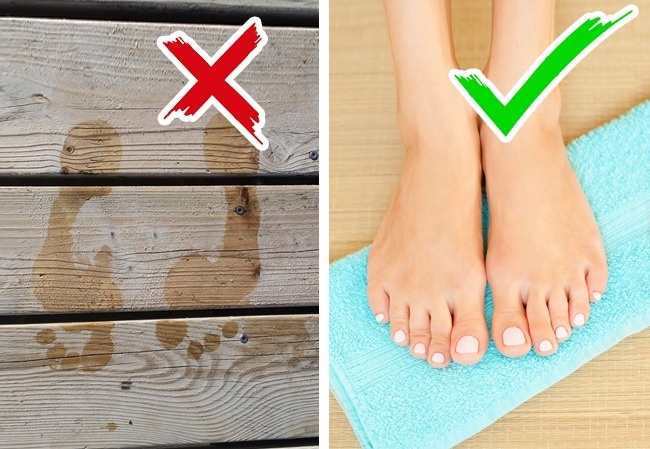 1. Στεγνά πόδια: Επιλέξτε παπούτσια κατασκευασμένα από φυσικά υλικά, που θα αφήνουν την επιδερμίδα σας να αναπνεύσει. Αποφύγετε να φοράτε το ίδιο ζευγάρι παπούτσια αρκετές ημέρες συνεχόμενες. Σκουπίστε καλά τα πόδια σας με μια πετσέτα μετά το μπάνιο.