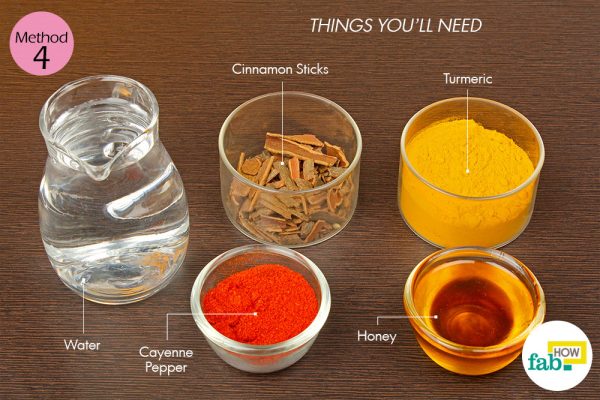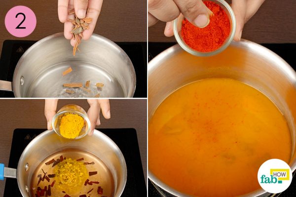 Προσθέστε μερικούς ράβδους κανέλας, 1 κουταλάκι του γλυκού κουρκούμη σκόνης και λίγο πιπέρι καγιέν στο νερό.
