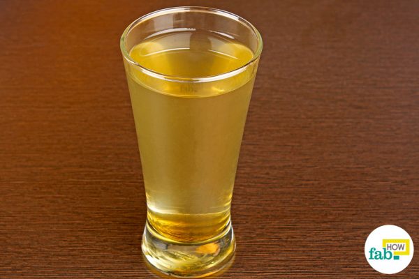 Ρίξτε 2 κουταλιές μηλόξυδο και 1 κουταλάκι του γλυκού μέλι σε ένα ποτήρι νερό και ανακατέψτε καλά.