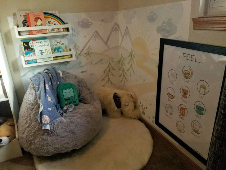 Μια γωνία χαλάρωσης προορίζεται να είναι ένας ασφαλής χώρος στον οποίο το παιδί μπορεί να ξεφύγει από όλα, να περάσει τον χρόνο ποιοτικά μόνο του και να επεξεργαστεί και να απελευθερώσει όλα τα έντονα συναισθήματά του.
