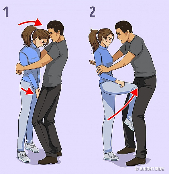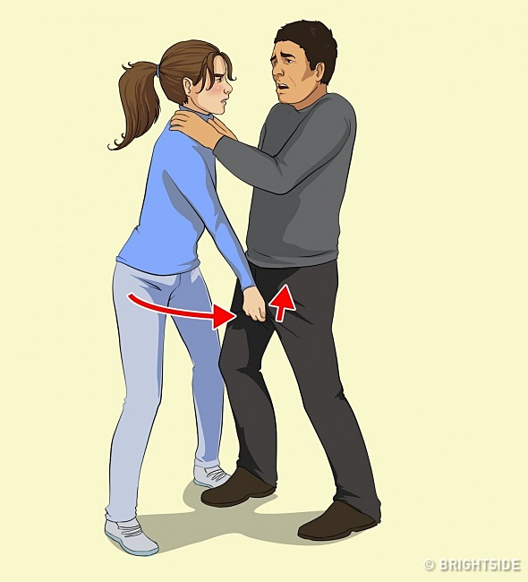 Ίσως να είναι και η μοναδική κίνηση που βγαίνει τόσο φυσικά σε εμάς τις γυναίκες, όταν νιώθουμε ότι απειλούμαστε. Αν προσπαθείτε να ξεφύγετε από αυτόν που σας επιτίθεται, δώστε του ένα δυνατό χτύπημα στα γεννητικά όργανα. Η κίνηση αυτή θα παραλύσει προσωρινά τον αντίπαλό σας και θα έχετε χρόνο να διαφύγετε.
