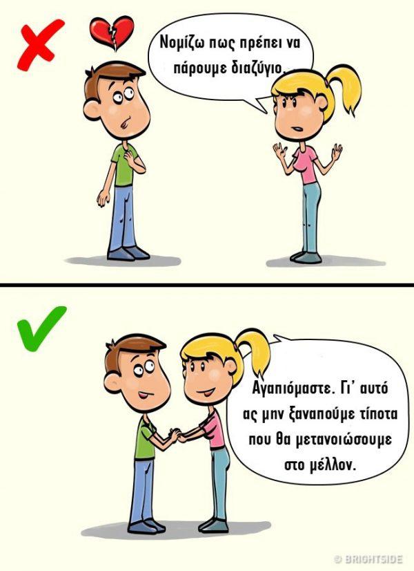 4. Ποτέ μη μιλάτε για διαζύγιο: Λέξη σαν το «διαζύγιο» ή αντίστοιχες, μπορούν να βλάψουν πραγματικά τα συναισθήματα του συντρόφου σας.