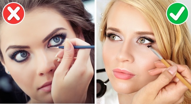 Μακιγιάρετε την κάτω εσωτερική γωνία των ματιών σας: Η άκρη του μολυβιού σας και ειδικά το βουρτσάκι ενός υγρού αϊλάινερ, φιλοξενούν βακτήρια. Αυτά, μπορούν να προκαλέσουν μόλυνση εάν κατευθυνθούν προς τον βλεννογόνο του ματιού. Μαζί με τα δάκρυα του ματιού, το αϊλάινερ δημιουργεί ευνοϊκές συνθήκες για τον πολλαπλασιασμό των βακτηρίων.