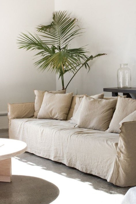 Εκτός από κάποιο μικρό έπιπλο, μπορείτε πάντα να γεμίσετε τον χώρο πίσω από τον καναπέ σας με φυτά. Βάλτε 2 ή 3 ψηλά φυτά για να φέρετε την φύση στον χώρο σας ή ένα μεγάλο φυτό σε συνδυασμό με ένα μακρόστενο τραπεζάκι, όπως ακριβώς συμβαίνει στην παρακάτω φωτογραφία.