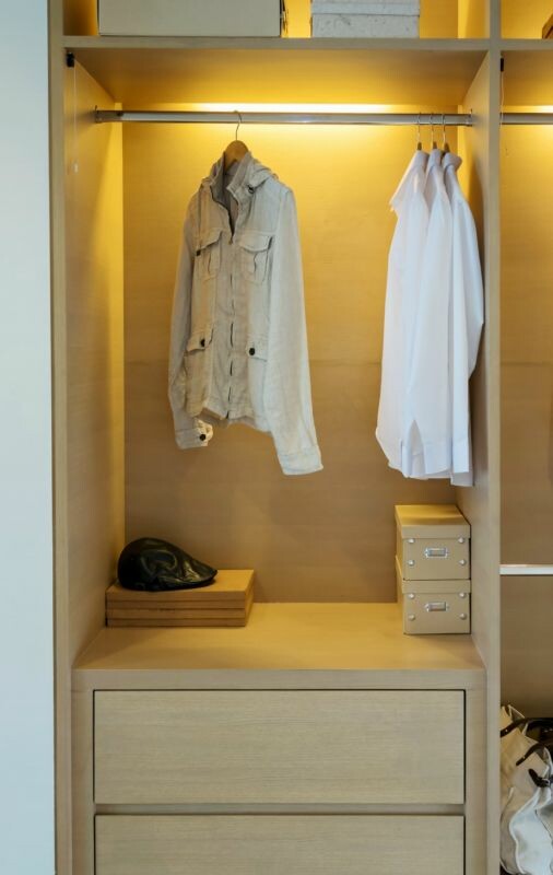 Φωτίστε την ντoυλάπα σας ώστε να φαίνεται μεγαλύτερη. Αντικαταστήστε την απλή λάμπα με μια ράβδο LED. Αυτή θα ενεργοποιείται με την κίνηση και έχει μεγαλύτερη διάρκεια ζωής.