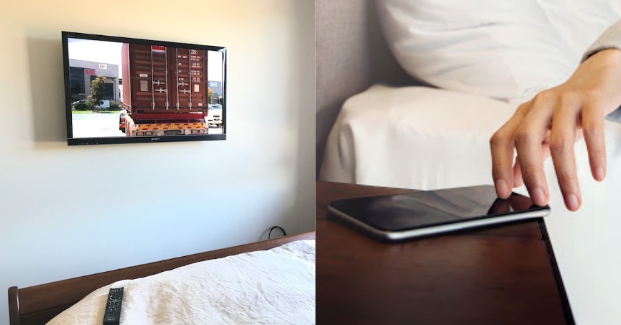 – Τηλεόραση στο υπνοδωμάτιο: Όλοι γνωρίζουμε ότι η οθόνη παράγει μπλε φως το οποίο μπερδεύει την παραγωγή της μελατονίνης και κατά συνέπεια επηρεάζει τον ύπνο. Όσο δελεαστικό κι αν ακούγεται να μείνεις ξαπλωμένη και να κάνεις μαραθώνιο της αγαπημένης σου σειράς, προσπάθησε να αποφύγεις την τηλεόραση στο υπνοδωμάτιο και μάλιστα πριν κοιμηθείς.