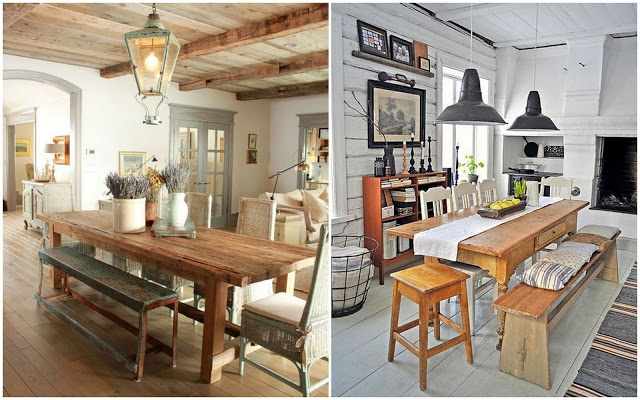 – Προσθέστε ένα παγκάκι: Μια προσθήκη που μπορεί να αλλάξει εντελώς την όψη μιας τραπεζαρίας με παραλληλόγραμμο τραπέζι. Προσθέστε έναν απλό ξύλινο πάγκο ή και μερικά σκαμπώ, σε συνδυασμό με καρέκλες, και δημιουργείστε ένα σύνολο όμορφο αλλά και λειτουργικό με επιπλέον εύκολα μετακινούμενα καθίσματα που καταλαμβάνουν λιγότερο χώρο απ΄όσο οι καρέκλες.