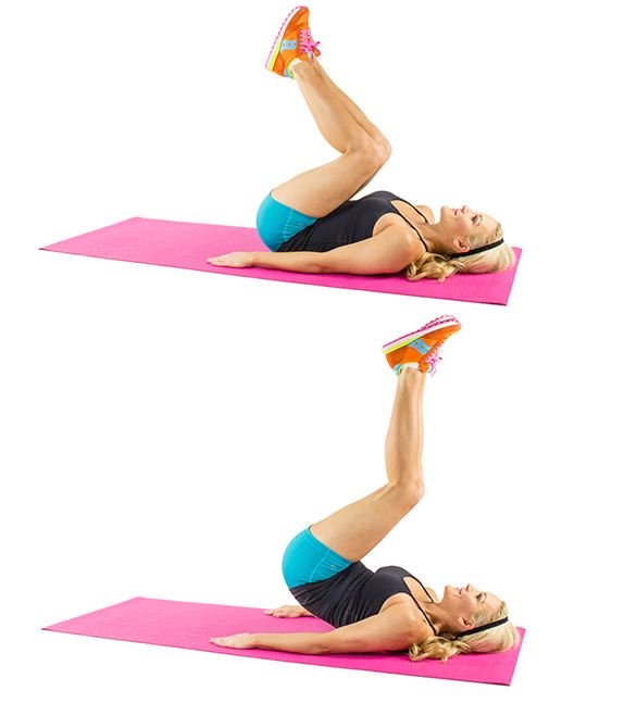 – Αντίστροφοι κοιλιακοί: Βήμα 1: Ξάπλωσε με το πρόσωπο να βλέπει προς τα επάνω και με τα πόδια ελαφρώς σηκωμένα. Πρόσεξε τα χέρια σου να είναι ανοιχτά σε V θέση έξω από τους γοφούς με τις παλάμες προς τα κάτω. Βήμα 2: Σήκωσε τους γοφούς σου αργά προς τα επάνω και σχημάτισε ένα τόξο φέρνοντας τα πόδια προς τα πάνω και προς το στήθος. Κατέβασε το σώμα σου στην αρχική του θέση. Επανέλαβε 15 φορές.