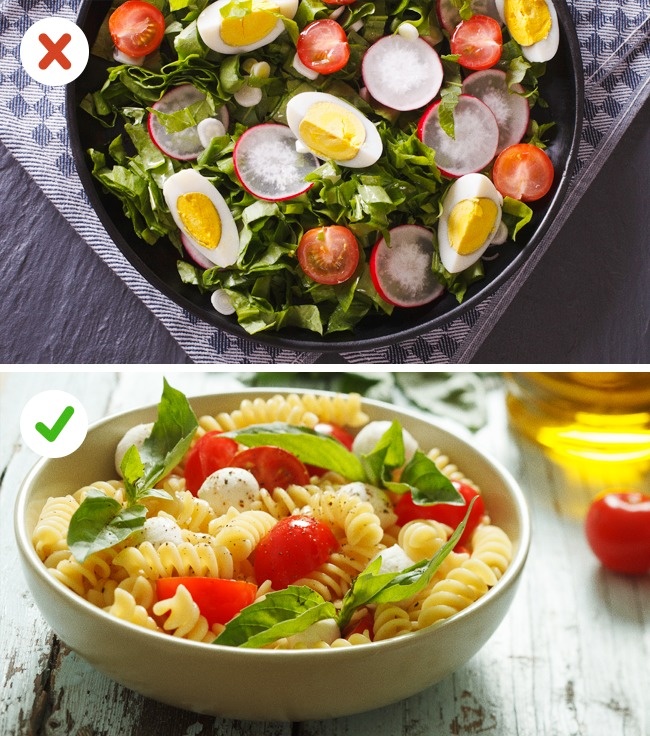 3. Πιάτα χορτοφάγων: Σύμφωνα με μια ανώνυμη έρευνα των σεφ στις Ηνωμένες Πολιτείες που πραγματοποιήθηκε από το περιοδικό Food Network, το 15% των ερωτηθέντων παραδέχθηκε ότι το πραγματικό περιεχόμενο των χορτοφαγικών πιάτων, μπορεί να μην συμπίπτει απόλυτα με αυτά που αναγράφονται στο μενού. Αν είστε απόλυτα χορτοφάγοι και υπενθυμίζετε στο προσωπικό του εστιατορίου τις αρχές σας, τότε θα πρέπει να είστε σε επιφυλακή: ως τρόπο εκδίκησης, μερικοί μάγειρες μπορεί να προσθέσουν κομμάτια τόνου ή μπέικον στη σαλάτα σας. Σύμφωνα με τα λόγια του ειδικού Άντονι Μπουρντέν: «Οι χορτοφάγοι είναι εκνευριστικά επίμονοι για κάποιους σεφ».
