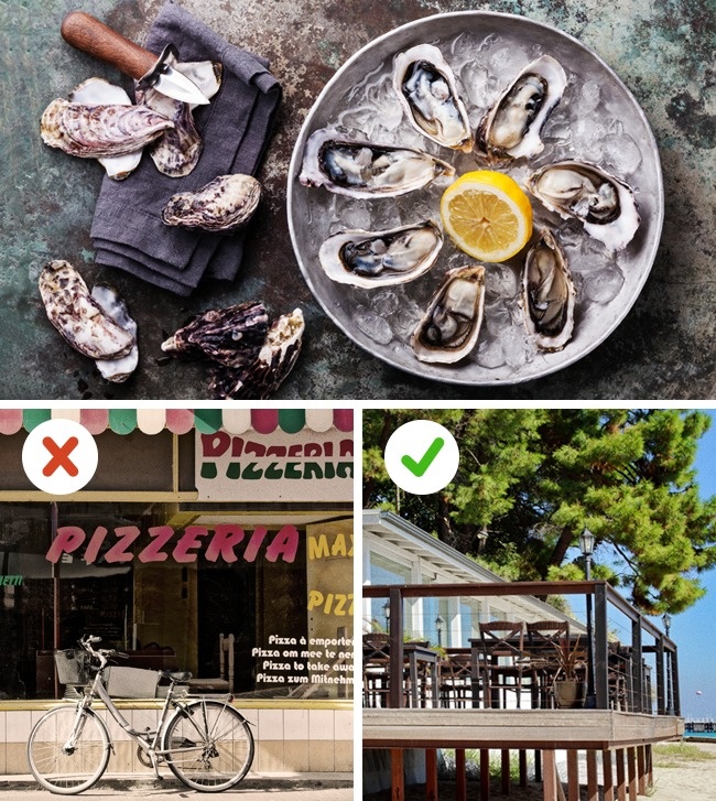 7. Στρείδια: Δεν θα πρέπει να παραγγείλετε στρείδια σε εστιατόρια που δεν ειδικεύονται στα θαλασσινά. Τα μπαγιάτικα στρείδια, μπορούν εύκολα να προκαλέσουν τροφική δηλητηρίαση. Ως εκ τούτου, θα πρέπει να είστε σίγουροι ότι το εστιατόριο τα προμηθεύεται από αξιόπιστους προμηθευτές και είναι φρέσκα.