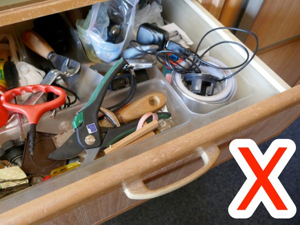 – Πετάξτε τα άχρηστα αντικείμενα από τα συρτάρια της κουζίνας.