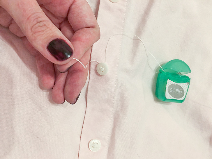 – Χρησιμοποιήστε οδοντικό νήμα για να κρατήσετε τα κουμπιά σας πιο πολύ: Εάν θέλετε να αποφύγετε το ξήλωμα των κουμπιών σας, απλά ράψτε τα με οδοντικό νήμα.